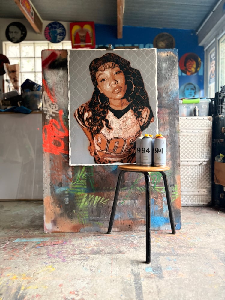 Pochoir Original, spray acrylique sur feuille de papier grain torchon 640gr
